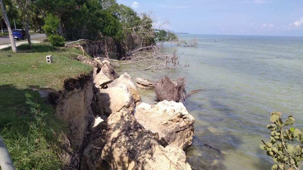 La erosión de los manglares es lo que ocasiona los hundimientos dijo Minerva Jiménez que la mayoría del Bulevar desde la Megasecultura hasta casi llegando a Calderitas se puede observar el deterioro de las banquetas y las orillas donde se está erosionando hay muchos hundimientos y es un peligro para los niños, desde cuando se mantienen así y no hacen nada, manifestó.