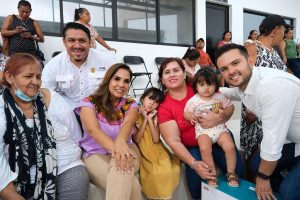 Acompañaron a la Gobernadora en el presídium la presidenta municipal de Othón P. Blanco, Yensunni Martínez Hernández; y las beneficiarias Lourdes Noemi Uh Alemán y Minerva Yam Ruiz.