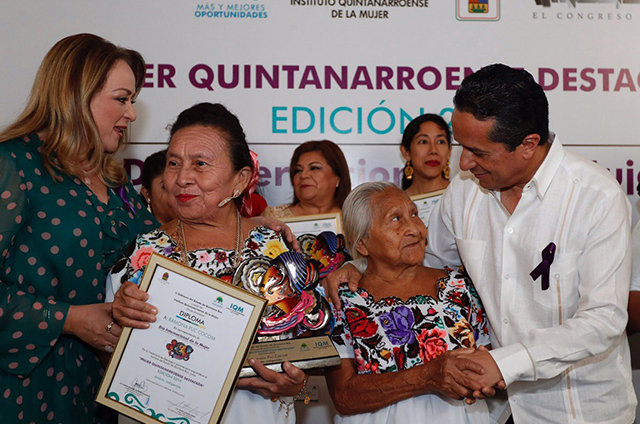 CHETUMAL, Quintana Roo.- El gobernador del estado, Carlos Joaquín González, en compañía de la presidenta del Sistema DIF Quintana Roo, Gabriela Rejón, entregó 15 galardones a igual número de mujeres que se han destacado en diferentes ámbitos de la vida quintanarroense y con los que se reconoce el esfuerzo y la lucha por una sociedad más unida, más justa e igualitaria.