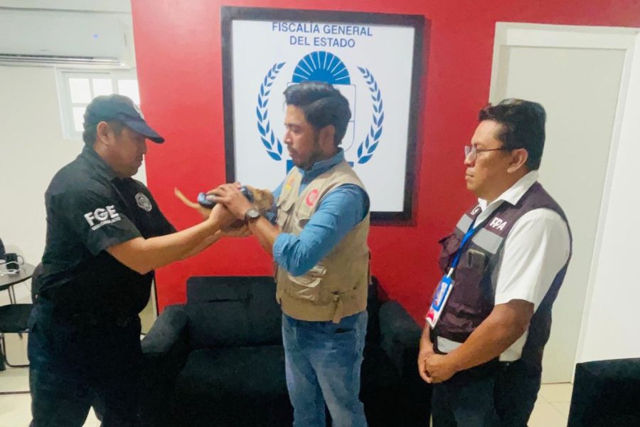 Chetumal.- La Fiscalía General del Estado, en colaboración con la Secretaría de Ecología y Medio Ambiente (SEMA) y Procuraduría de Protección al Ambiente (PPA), resguarda sano y salvo a un perrito de raza Chihuahua, luego de que el jueves 24 de abril, fuera sujetado a un dron, volando a varios metros del suelo, en Xul-Ha, localidad de este municipio.