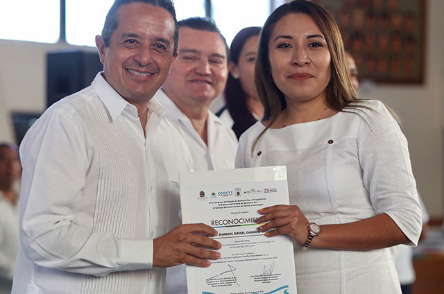 En el marco de la entrega de los Premios Estatales de Ciencia, Tecnología e Innovación 2019, del Consejo Quintanarroense de Ciencia y Tecnología (COQCYT), , el mandatario indicó que estos premios representan el reconocimiento de los quintanarroenses que trabajan en pro de la sociedad.