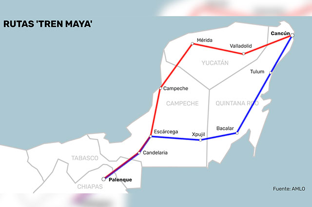 “En los trazos del tren pasan Bacalar hacia Calakmul; la idea es virar un poco a la izquierda en una desviación a Chetumal y que alcance al aeropuerto”, dijo.