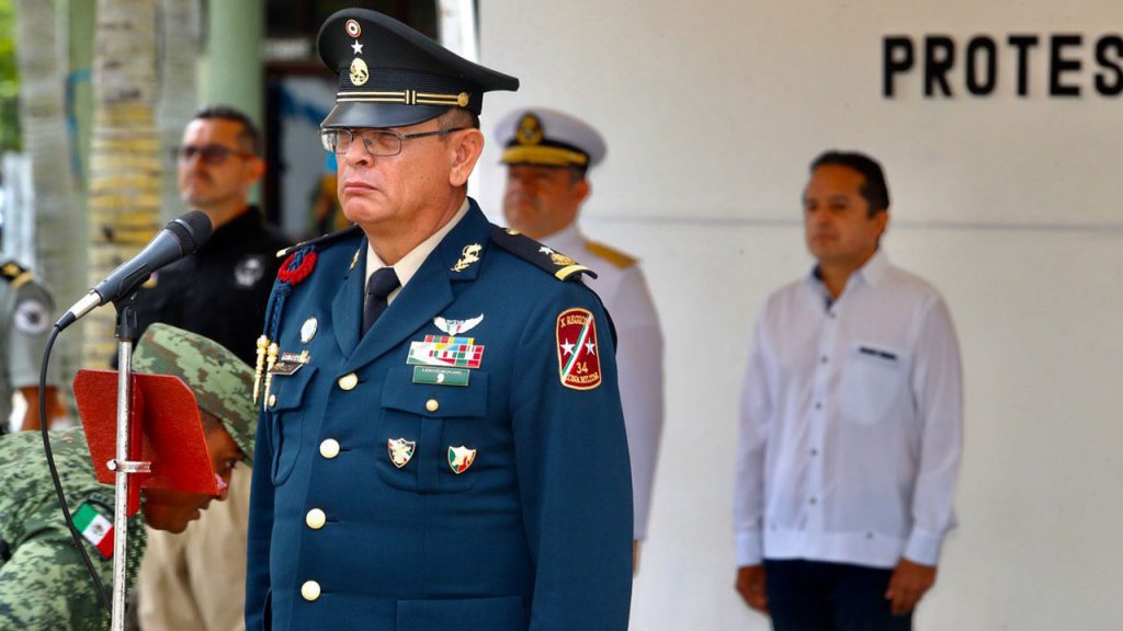 CHETUMAL.- El gobernador, Carlos Joaquín, asistió a la ceremonia de Toma de Posesión y Protesta de Bandera del general brigadier DEM José Luis Vázquez Araiza como nuevo comandante de la 34ª Zona Militar, en la explanada del 7º Regimiento de Caballería Motorizado.
