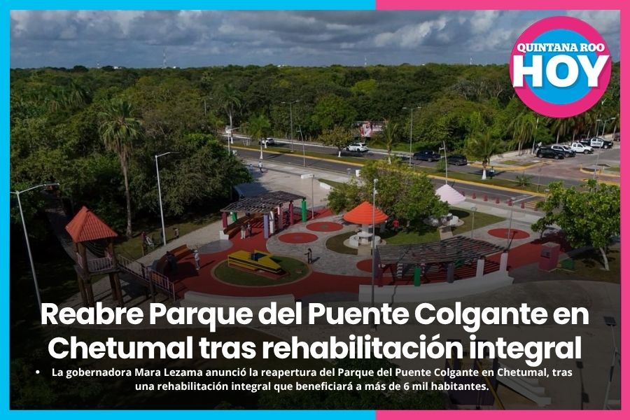 Chetumal.- Como parte del programa de rescate de espacios públicos “Que brille Chetumal”, la gobernadora Mara Lezama Espinosa anunció la reapertura del Parque del Puente Colgante, un sitio emblemático de la capital del estado que durante años ha sido punto de encuentro para las familias de la ciudad.