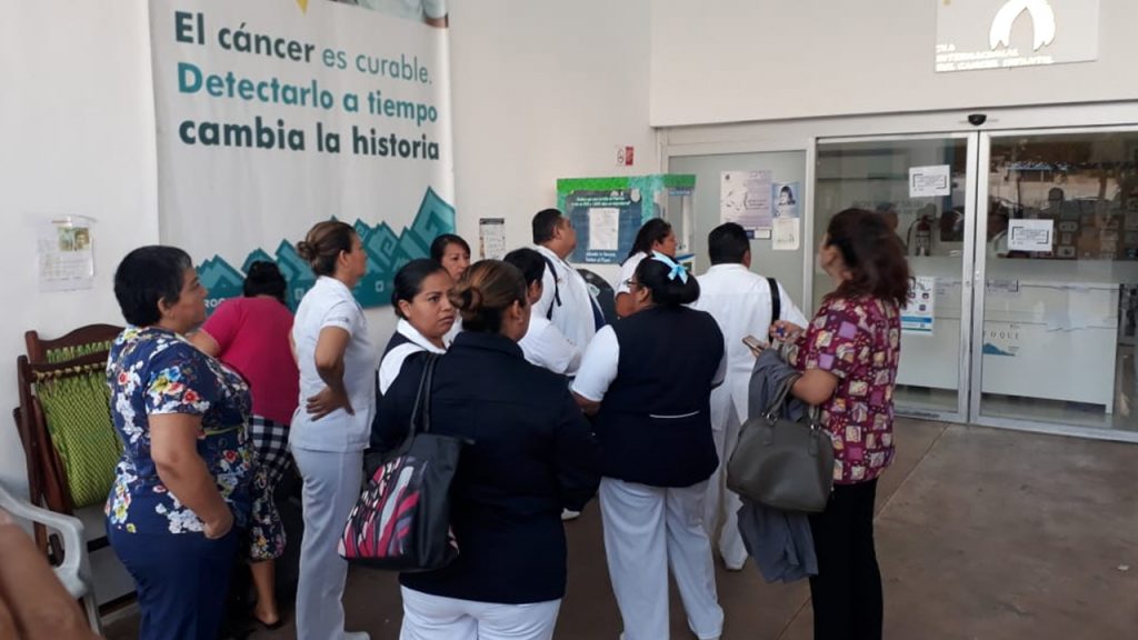 Poco antes de las 7:00hrs, el personal médico y de enfermería se reunió al interior del nosocomio para dar a conocer las carencias que tienen, lo cual denunciaron obedece a la falta de la firma del acuerdo Instituto Nacional de Salud y Bienestar (Insabi). Si bien no habían sido atendidos, al ver la presencia de los medios de comunicación, el director del hospital los mando a llamar a la Dirección.
