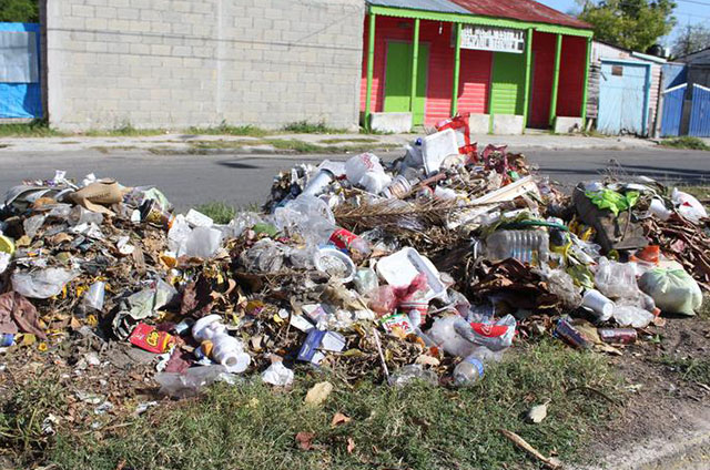 Algunas banquetas y camellones de Chetumal aún presentan cúmulos de basura por la deficiencia en el servicio de recolecta; en estos espacios son notorias las botellas, tapas y otros objetos que acumulan agua y son óptimos para ser un criadero de moscos.
