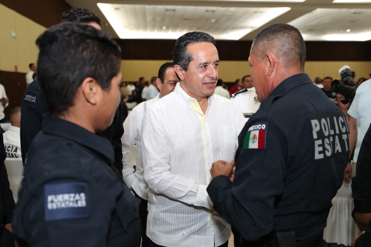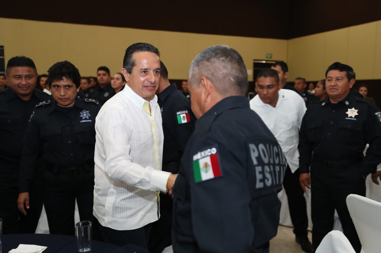 Durante la ceremonia, el gobernador Carlos Joaquín anunció aumento en las prestaciones a los elementos de la Secretaría de Seguridad Pública: