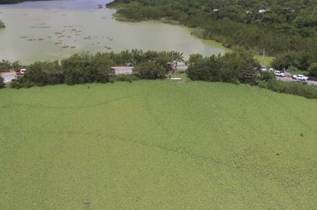 Indicó que a la fecha suman ya 14 hectáreas que cubren el agua del lugar, lo que afecta la flora y la fauna de este ecosistema.