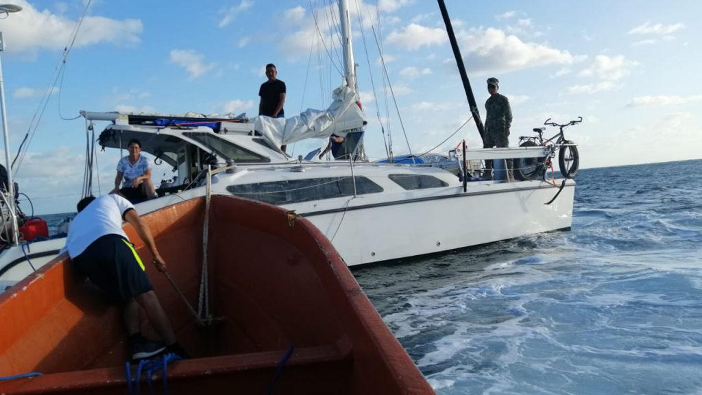 Esta acción se llevó a cabo cuando se recibió una llamada informando que una embarcación tipo velero de nombre “RIKI” con dos tripulantes a bordo, había encallado aproximadamente a 600 metros al oeste del Canal de Zaragoza.