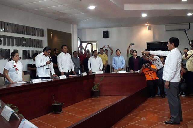 En el segundo intento, Segovia Martínez logró asumir sus funciones como presidente municipal de Othón P. Blanco, ya que este sábado por la mañana en la Sala de Cabildos Mariano Angulo Basto, se llevó a cabo el protocolo de Toma de Protesta de Ley al suplente del ex presidente Hernán Pastrana Pastrana.