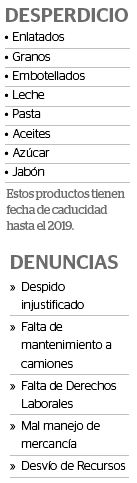 Destacó que varias toneladas de alimentos y despensas se encuentran en los patios del inmueble, las cuales no fueron entregadas a las tiendas comunitarias. De estas irregularidades tiene conocimiento el delegado y demás jefes del organismo. Inclusive señaló que cuando llegan autoridades del centro del país, guardan la mercancía en mal estado.