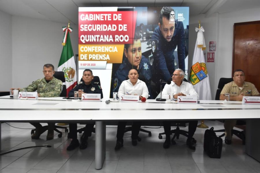 En la conferencia de prensa participaron también Cristina Torres Gómez, Secretaria de Gobierno; Contralmirante Julio César Gómez Torres, Secretario de Seguridad Ciudadana; General del Brigada Diplomado de Estado Mayor Fidel Mondragón Rivero, Comandante de la 34 Zona Militar y Vicealmirante Cuerpo General Diplomado de Estado Mayor Marco Antonio Muñoz Hernández, Comandante de la XI Zona Naval de Chetumal.