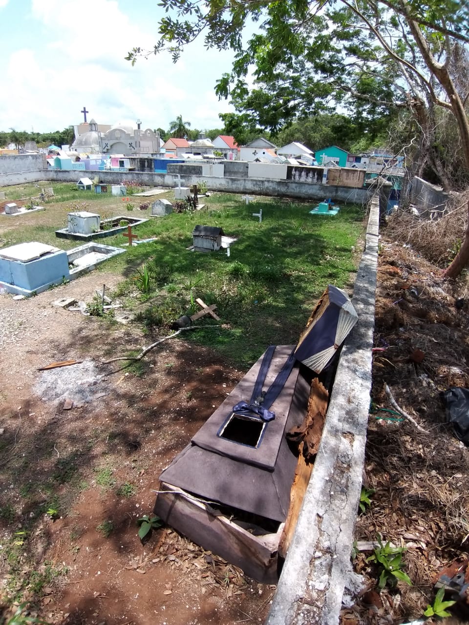 COZUMEL.- Luego de que el personal del desarrollo urbano responsable de los panteones municipales sacará los ataúdes de personas exhumadas, la Cofepris podría sancionarlos por las omisiones, ya que fueron apilados en un extremo del cementerio lo que podría significar un riesgo a la salud pública pues no se saben de qué fallecieron las personas que lo ocuparon, aunado a que deben de contar con un permiso para realizar dichas acciones.
