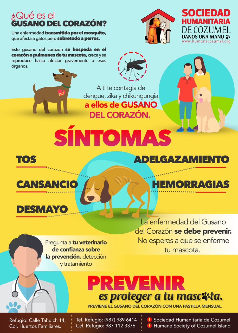 COZUMEL.- La Sociedad Humanitaria Cozumel (SHC), en coordinación con varias veterinarias, inició la campaña de detección del gusano de corazón, esto debido a un incremento de casos descubiertos en la isla.