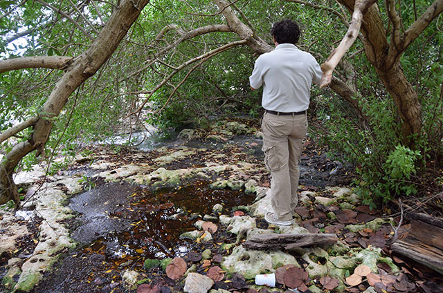 Al lugar llegó el subdirector de Ecología, Rafael Chacón, quien revisó el lugar, percatándose que efectivamente había un tubo de desagüe que descarga aguas negras.
