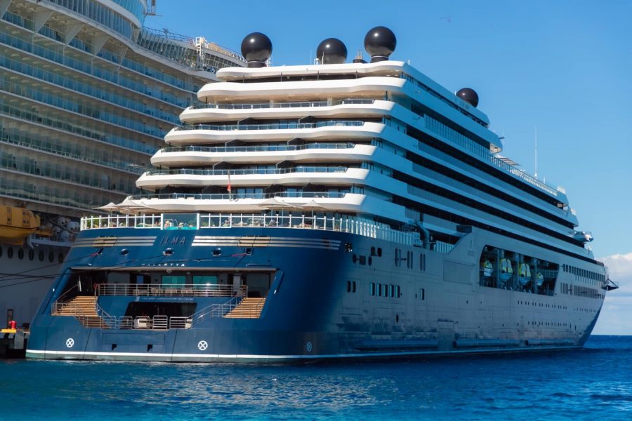 El crucero Ilma cuenta con 224 suites con terrazas privadas, dos suites superiores de más de 300 metros cuadrados, cinco restaurantes de clase mundial y siete bares, una exclusiva bodega y un puerto deportivo ampliado.