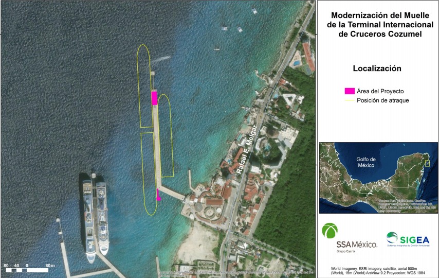 El proyecto Modernización del Muelle de la Terminal Internacional de Cruceros Cozumel consiste en la construcción de un Duque de Alba en la zona de concesión marítima y la ampliación de la pasarela actual en el muelle de la Terminal Internacional de Cruceros Cozumel en la zona federal marítima. Con ello se busca ampliar la capacidad de operación del muelle y ampliar su vida útil en 50 años a partir de que se autorice el presente estudio.