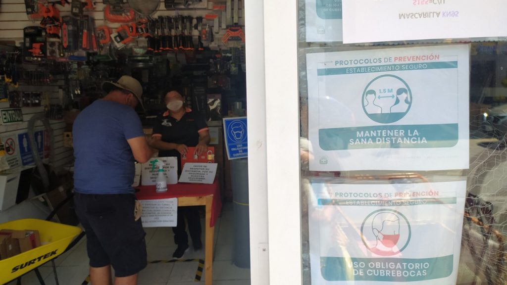En ese sentido el Director de Protección Civil, Héctor Mac Marín, indicó que se revisa que establecimientos cumplan con las medidas sanitarias básicas como es el uso de cubrebocas, guantes, tapetes desinfectantes y que tengan a la vista gel antibacterial, señalamientos para mantener la distancia y los carteles con las recomendaciones para enfrentar la pandemia.