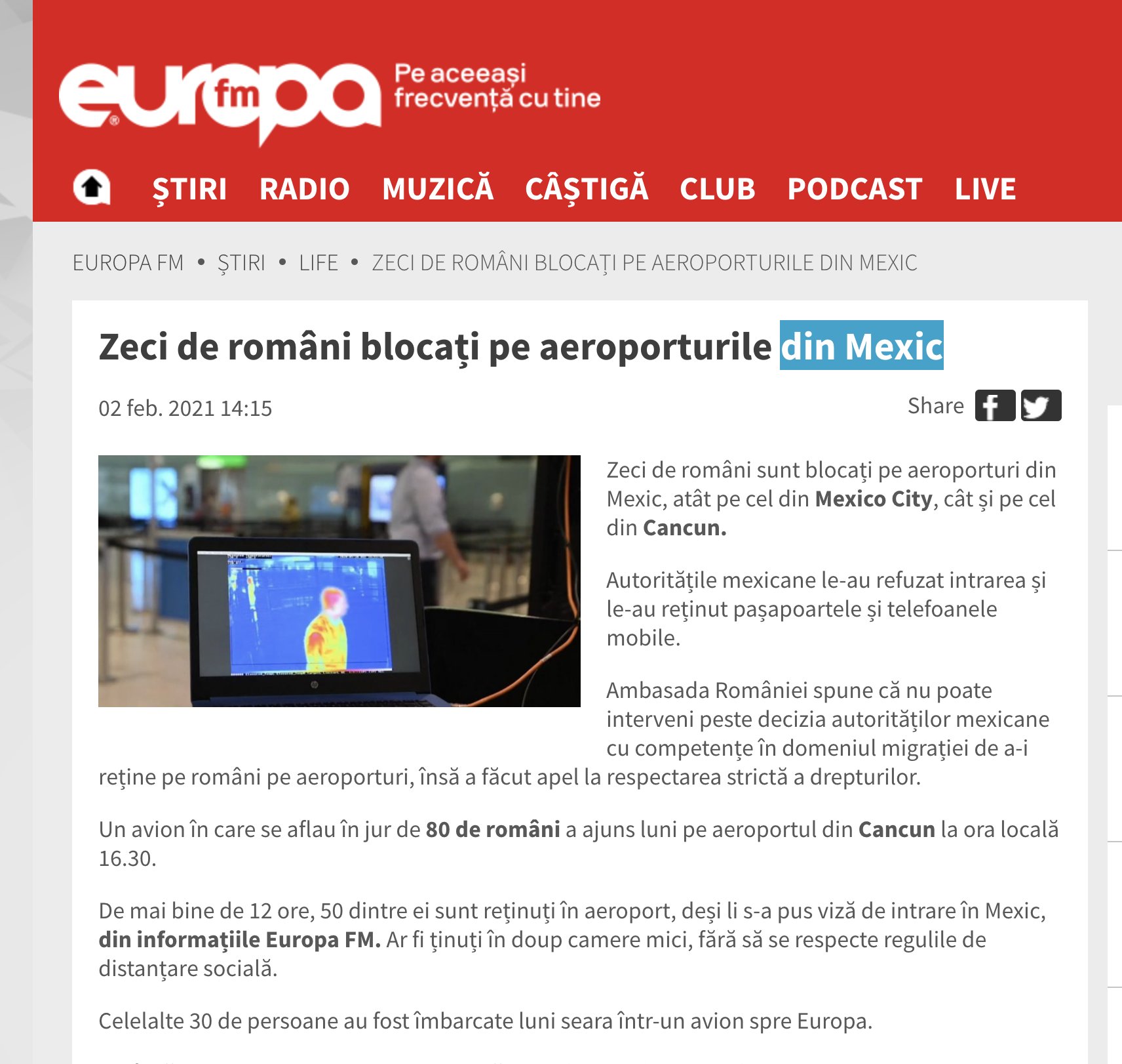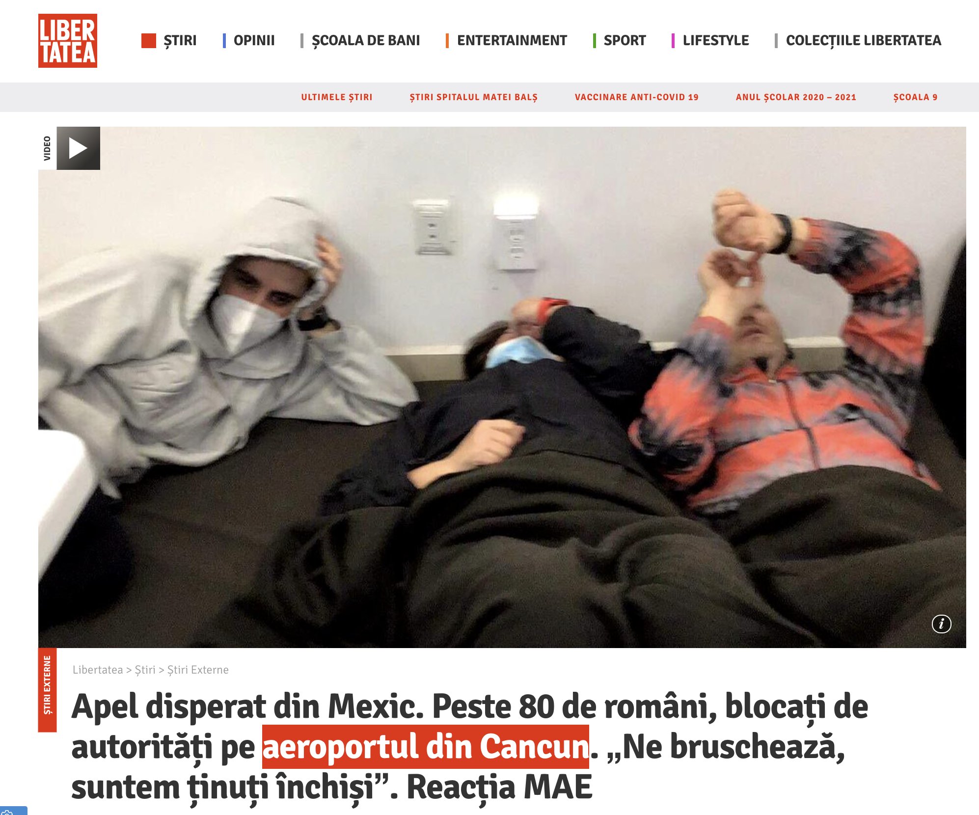 Esta noticia llamó la atención a medios de Rumania, quienes aseguraron que durante tres días estuvieron durmiendo en las instalaciones del aeropuerto de Cancún sin las medidas de seguridad e higiene y distanciamiento social por la pandemia.