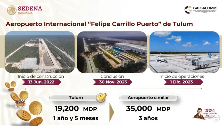 Hizo hincapié que el aeropuerto de Tulum “Felipe Carrillo Puerto”, debió haber significado una inversión de 20 mil millones de pesos; fustigó que en los gobiernos anteriores “no se hacía eso, nada más era sacarle y sacarle el recurso a Quintana Roo. Llegan cerca de 300 aviones, son casi 600 operaciones diarias, solo del aeropuerto de Cancún, sí aportan muchísimo”.