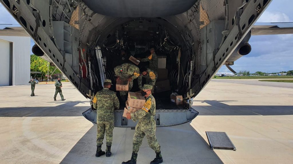 Chetumal.- La Secretaría de la Defensa Nacional a través de las Comandancias de la X Región Militar y 34/a. Zona Militar, informa a la población en general, que como parte de las acciones realizadas en la aplicación del Plan DN-III-E, derivado de la contingencia de salud ocasionada por el COVID-19, el día de hoy, en vuelo procedente de la Cd. de México, aterrizó en el Aeropuerto Internacional de esta ciudad, una aeronave tipo C-27J “Spartan” de la Fuerza Aérea Mexicana, transportando 4 toneladas de insumos, medicamentos y equipo de protección personal, los cuales serán distribuidos en los Hospitales INSABI COVID-19 de la zona sur del estado.