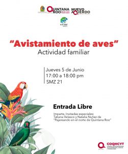 Bajo la guía de Tatiana Velasco y Natalia Núñez, del proyecto “Pajareando en el norte de Quintana Roo”, podrás descubrir las distintas especies que habitan nuestro entorno urbano.