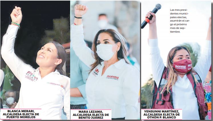 El Pleno del Teqroo en sesión pública no presencial, por unanimidad de votos determinó confirmar la declaratoria de validez de las elecciones y el otorgamiento de las constancias de mayoría a las planillas encabezada por María Elena Hermelinda Lezama Espinosa, en el municipio de Benito Juárez; Blanca Merari Tziu Muñoz, en el municipio de Puerto Morelos y a Yensunni Idalia Martínez Hernández, en el municipio de Othón P. Blanco.