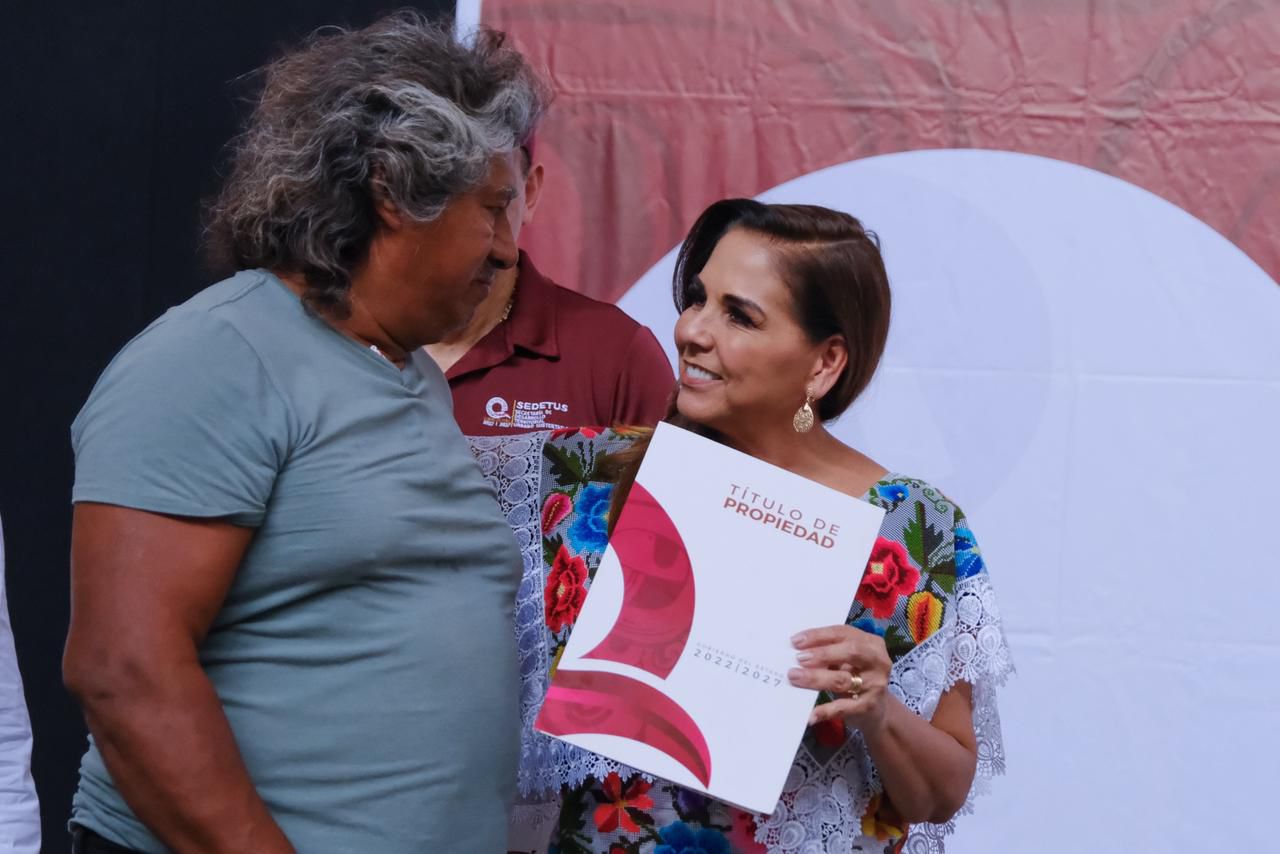 “Hoy nos convoca un motivo que toca lo más profundo del corazón: la entrega de 126 títulos de propiedad a familias quintanarroenses, documentos que no son sólo papeles, son historias, son certezas, son sueños que se consolidan, son la materialización de un derecho, que durante años les fue negado por los gobiernos neoliberales del pasado, pero que hoy, bajo esta visión humanista y con un gobierno cercano al pueblo, se convierte por fin en una realidad” explicó la Gobernadora.