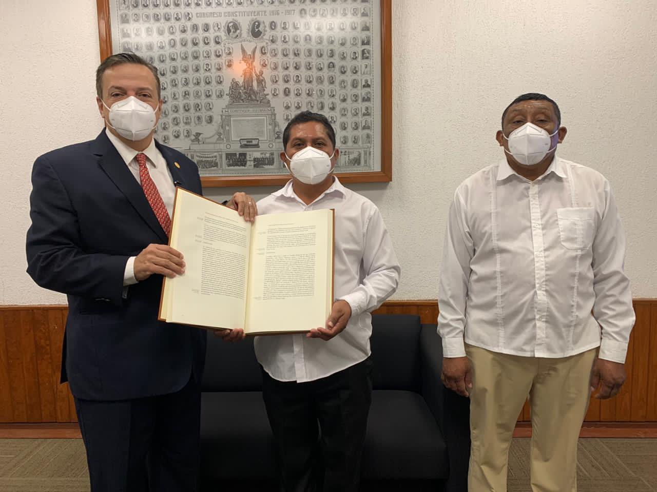 El documento de este hecho histórico, explicó Luis Alegre que se presentó en una primera instancia en el pleno de la Cámara de Diputados y posteriormente en el Senado de la República y la traducción y publicación fue firmada por firmada por 317 dignatarios mayas, los ocho jueces tradicionales mayas, por el equipo traductor, por los diputados de la decimosexta legislatura de Quintana Roo, por el presidente del Tribunal Superior de Justicia del Estado, por el gobernador de Quintana Roo y por el presidente de la República, Andrés Manuel López Obrador