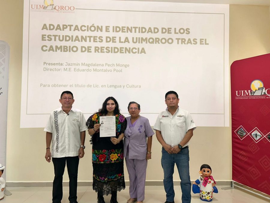 Felipe Carrillo Puerto.- Con la defensa de la tesis “Adaptación e identidad de los estudiantes de la Universidad Intercultural Maya de Quintana Roo tras el cambio de residencia”, Jazmín Pech obtuvo el título de licenciada en Lengua y Cultura.