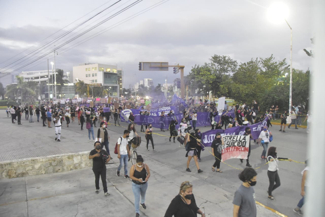 “¡Justicia!” es lo que más se escucha a una sola voz por parte de las manifestantes que llegaron a ser más de mil, de acuerdo a datos de los mismos grupos colectivos en Cancún, un número igual se registró en Playa del Carmen donde hay cientos de casos sin resolver en cuanto a feminicidios.