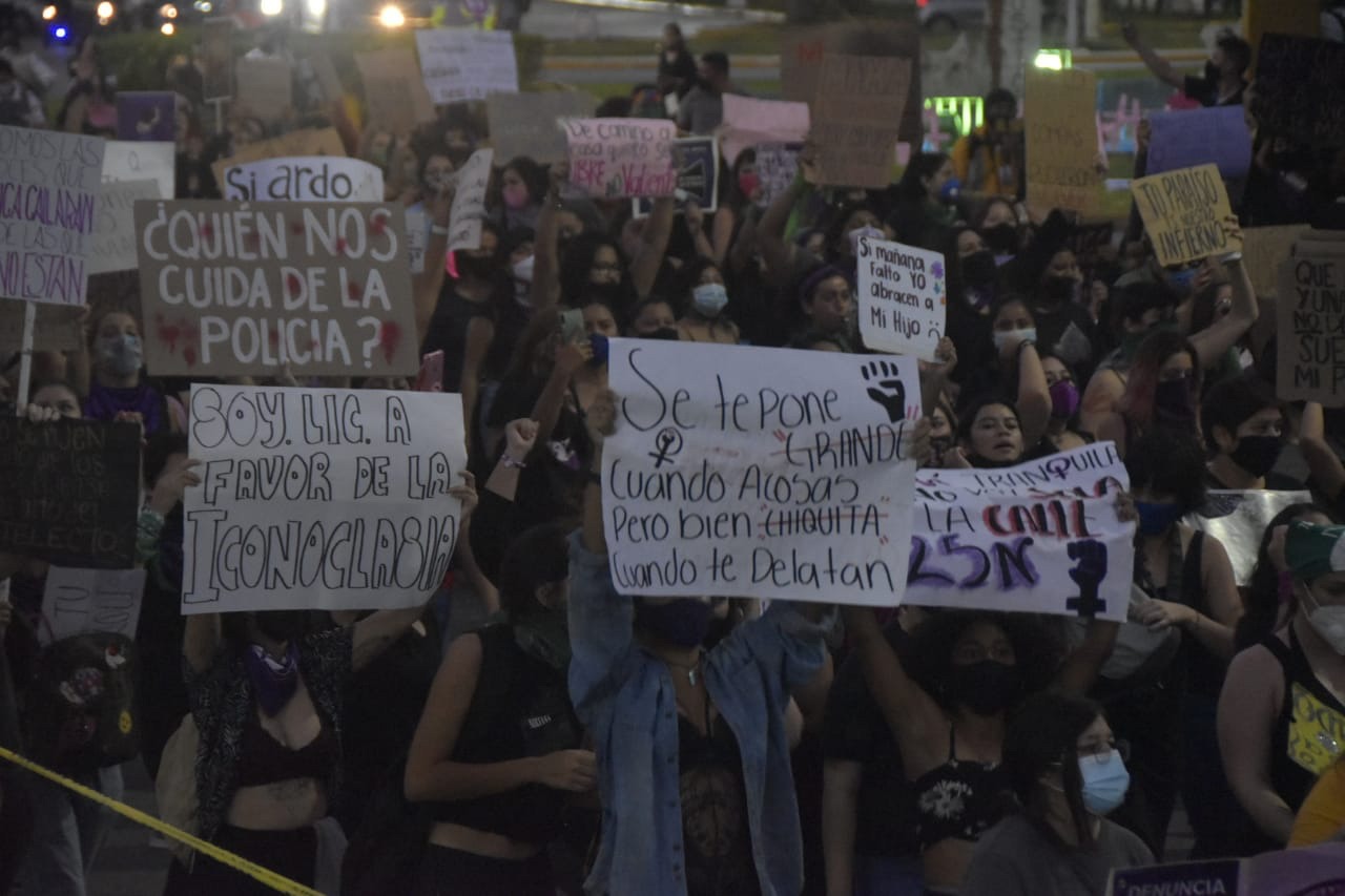 Vestidas en su mayoría con un atuendo color negro y con mensaje en telas de color morado, las mujeres iniciaron en la explanada del Palacio Municipal su recorrido que se dirigió hacia la glorieta conocida como “El Ceviche”, al tiempo que gritaban “Si vivas se la llevaron, vivas las queremos” y “Señor, señora, no sea indiferente, se mata a las mujeres en la cara de la gente”.