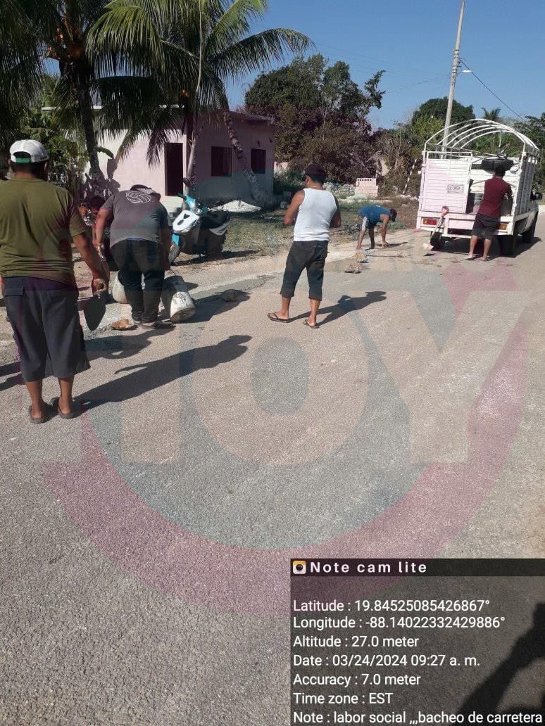 Señor Manuel, Ricardo Pat, taxistas, pobladores y al equipo organizador del programa Sembrando Vida de Tixcacalguardia, se hizo posible la labor de bacheo” dijo.