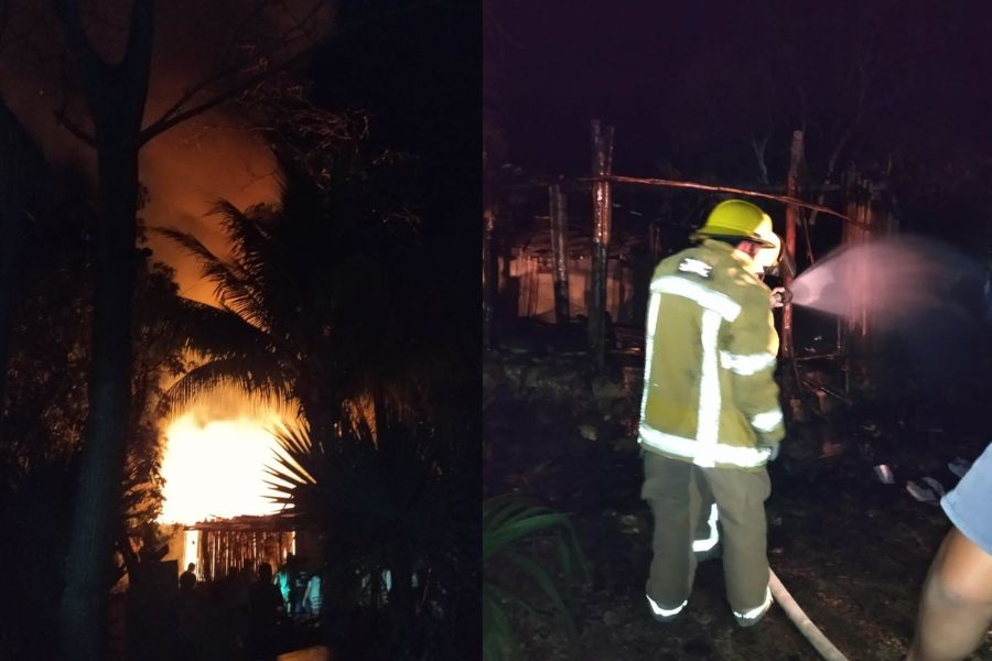Mencionó que la propiedad siniestrada pertenece a la señora Casilda Ake Uc y su esposo Ventura Dzidz Poot quienes lograron salir de la vivienda y pedir auxilio.