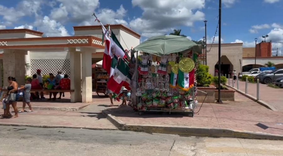 FELIPE CARRILLO PUERTO.- La venta de artículos patrios se mantiene muy baja, a días del Grito de Independencia, de acuerdo con Daniel Sánchez, un vendedor semifijo.