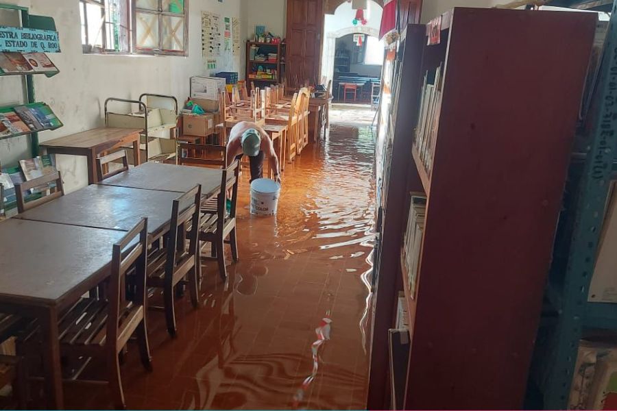 Felipe Carrillo Puerto.- Fuertes lluvias entraron a las instalaciones de la biblioteca pública, Santiago Pacheco Cruz de Tihosuco, por lo que la sala general estuvo cerrada al público al menos durante una semana.
