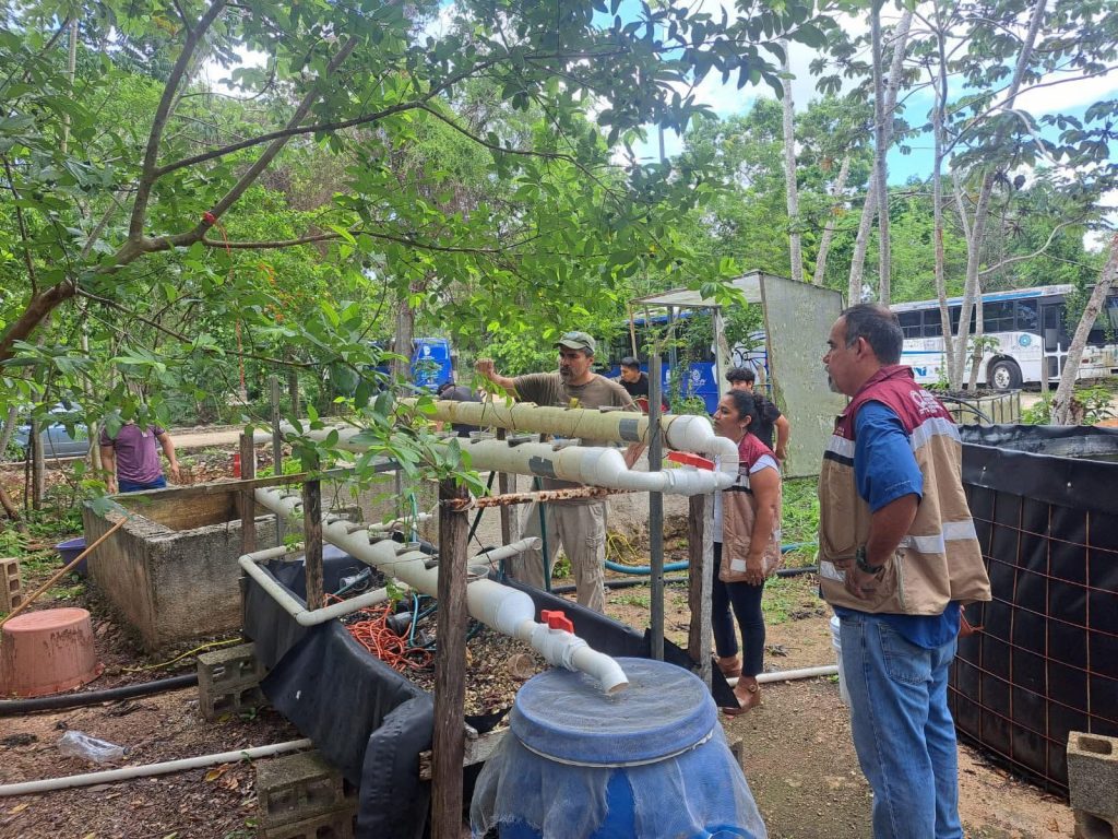 En el recorrido realizado a las instalaciones del Tecnológico participaron estudiantes, el Dr. Carlos Alberto Gracida Juárez, Profesor del ITSFCP, especialista en desarrollo sostenible en sistemas de producción acuícola así como personal de la Secretaría de Desarrollo Agropecuario, Rural y Pesca del Estado de Quintana Roo.