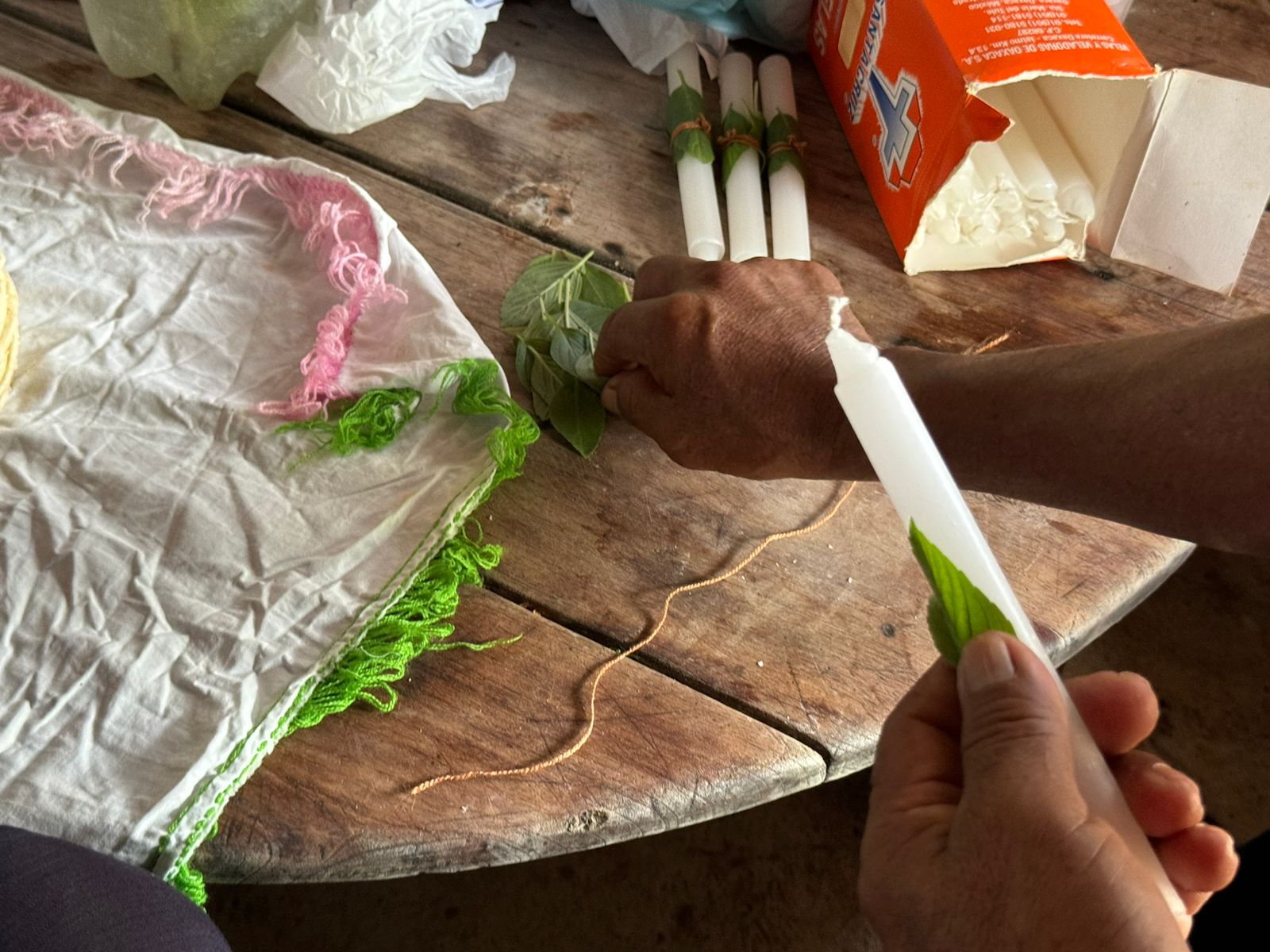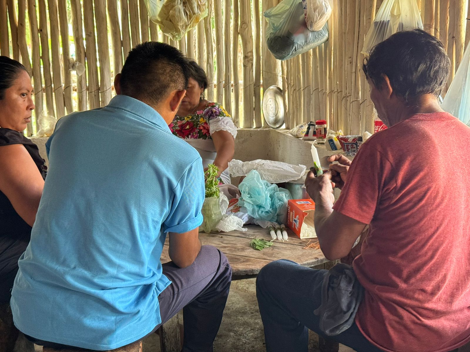 La compañía número 1 procedente la comunidad maya Kampokolche integrado por comandantes, rezadores, y soldados mayas realizaron los preparativos para la ofrenda, seleccionando cuidadamente las hojas de ruda que fueron colocados en las velas.