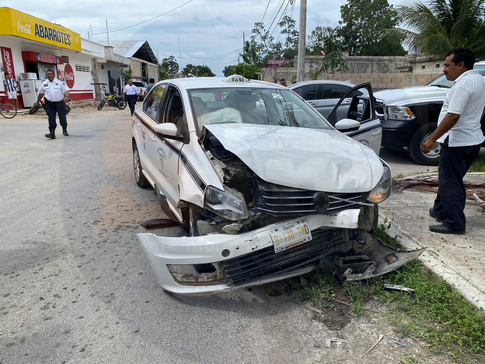 Felipe Carrillo Puerto.- Cuantiosos daños materiales es lo que dejó un aparatoso accidente protagonizado esta tarde por un taxi de Felipe Carrillo Puerto y otro de Playa del Carmen en la colonia Leona Vicario de esta cabecera municipal.