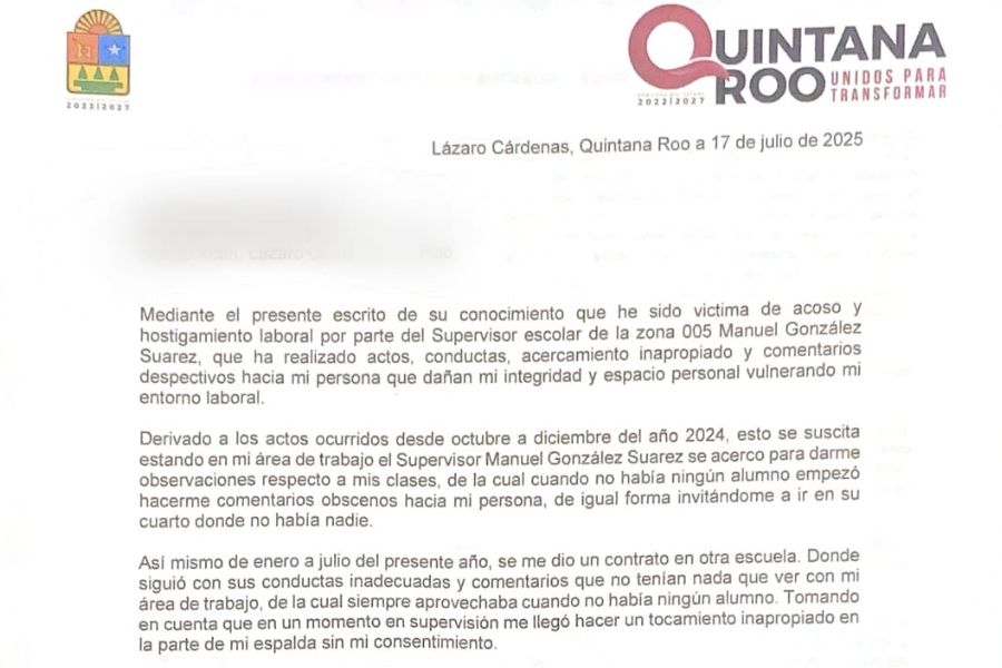 Una maestra denuncia a su supervisor por acoso; afirma temer represalias y pide justicia para evitar que otras colegas sufran lo mismo.