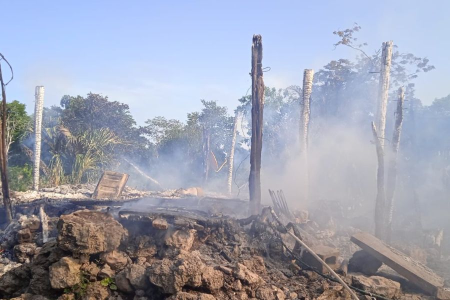 Vecinos intentaron apagar el fuego a cubetazos sin embargo la casa se quemó por completo, mencionó en lengua maya Don Efraín Witzil propietario de la vivienda.