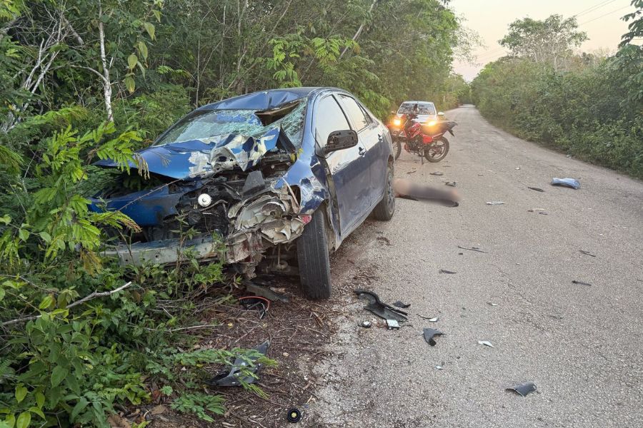 En lugar del percance ubicado a más de 30 kilómetros de la cabecera municipal de Felipe Carrillo Puerto en el tramo rural Chan Santa Cruz – Santa María Poniente arribaron elementos de la policía local para los protocolos de seguridad.