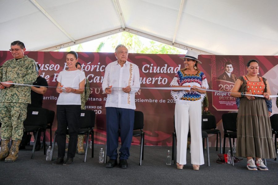 -El presidente Andrés Manuel López Obrador, la presidenta electa Claudia Sheinbaum y la gobernadora Mara Lezama Espinosa inauguraron el Museo Histórico en Felipe Carrillo Puerto
