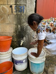 En la ciudad, en la cabecera municipal de Felipe Carrillo Puerto la mayoría de las más de 15 colonias padecen a diario por la falta de presión causando que el agua llegue de gota en gota mientras que en otros días, mina’an ja’ dice en lengua maya Doña Martina de la colonia Leona Vicario.