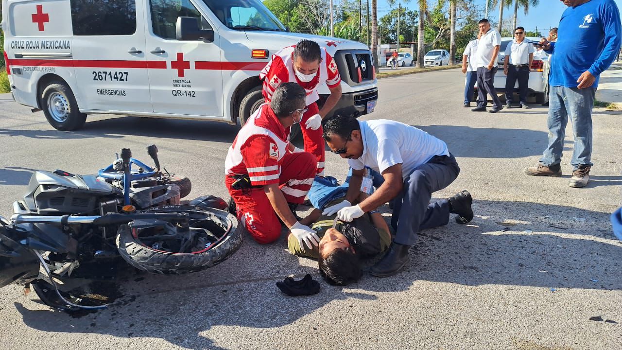 El conductor de la motocicleta fue identificado como Jonathan Uc Nahuat, quien resultó con lesiones graves en la cabeza tras impactarse contra una unidad de transporte público del municipio de José María Morelos.