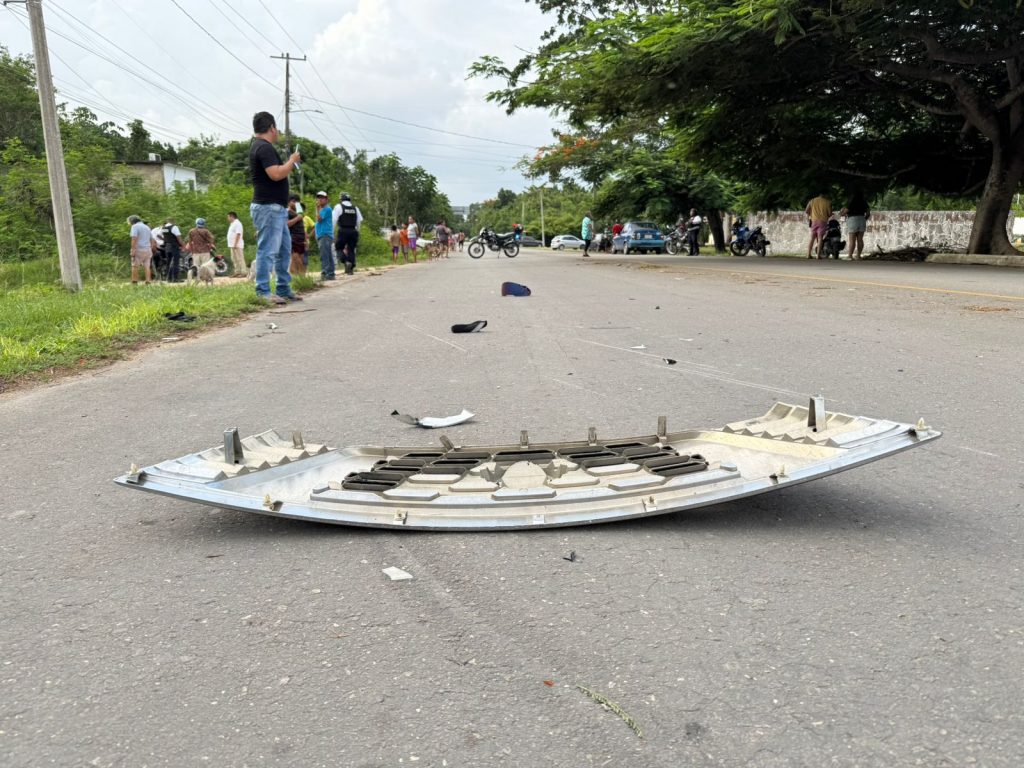 En el lugar se pudo apreciar pedazos de la parte frontal de la unidad presuntamente responsable no obstante el conductor logró escapar del lugar con rumbo a la capital del estado Chetumal.