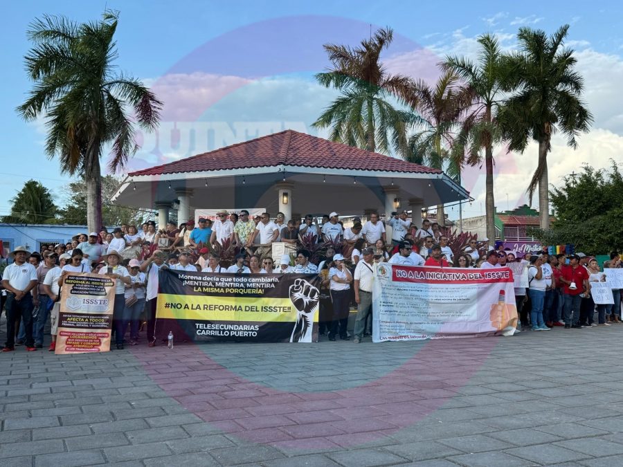 La marcha concluyó en el parque principal de Felipe Carrillo Puerto con la exposición de consignas así como la información pública y la exigencia de frenar la ley del ISSSTE.
