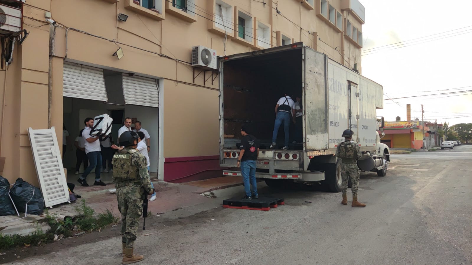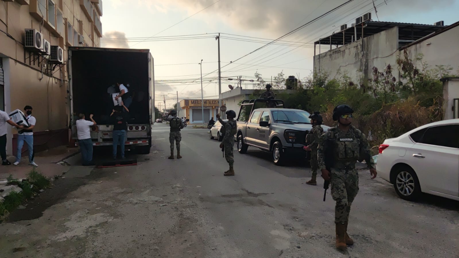 FELIPE CARRILLO PUERTO .- Siguiendo los protocolos de control y seguridad, personal del Instituto Nacional Electoral (INE)realiza el proceso de entrega de material electoral que se utilizará en la jornada electoral el próximo domingo 2 de junio.