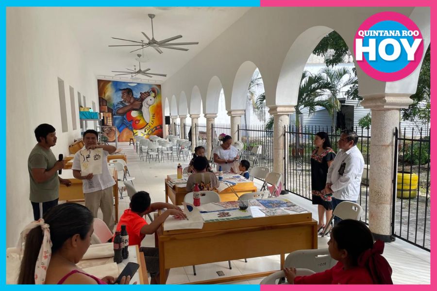 Ante la presencia de infancias mayas, el autor —originario de esta localidad— leyó sus poemas y compartió anécdotas de su infancia en Carrillo Puerto.