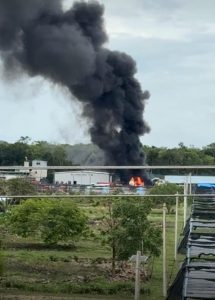 Alrededor del mediodía se activaron las alarmas de cuerpos de emergencia tras el reporte de incendio de una pipa cisterna cargada con más de diez mil litros de diesel al parecer estacionada en instalaciones del Tren Maya de Felipe Carrillo Puerto.